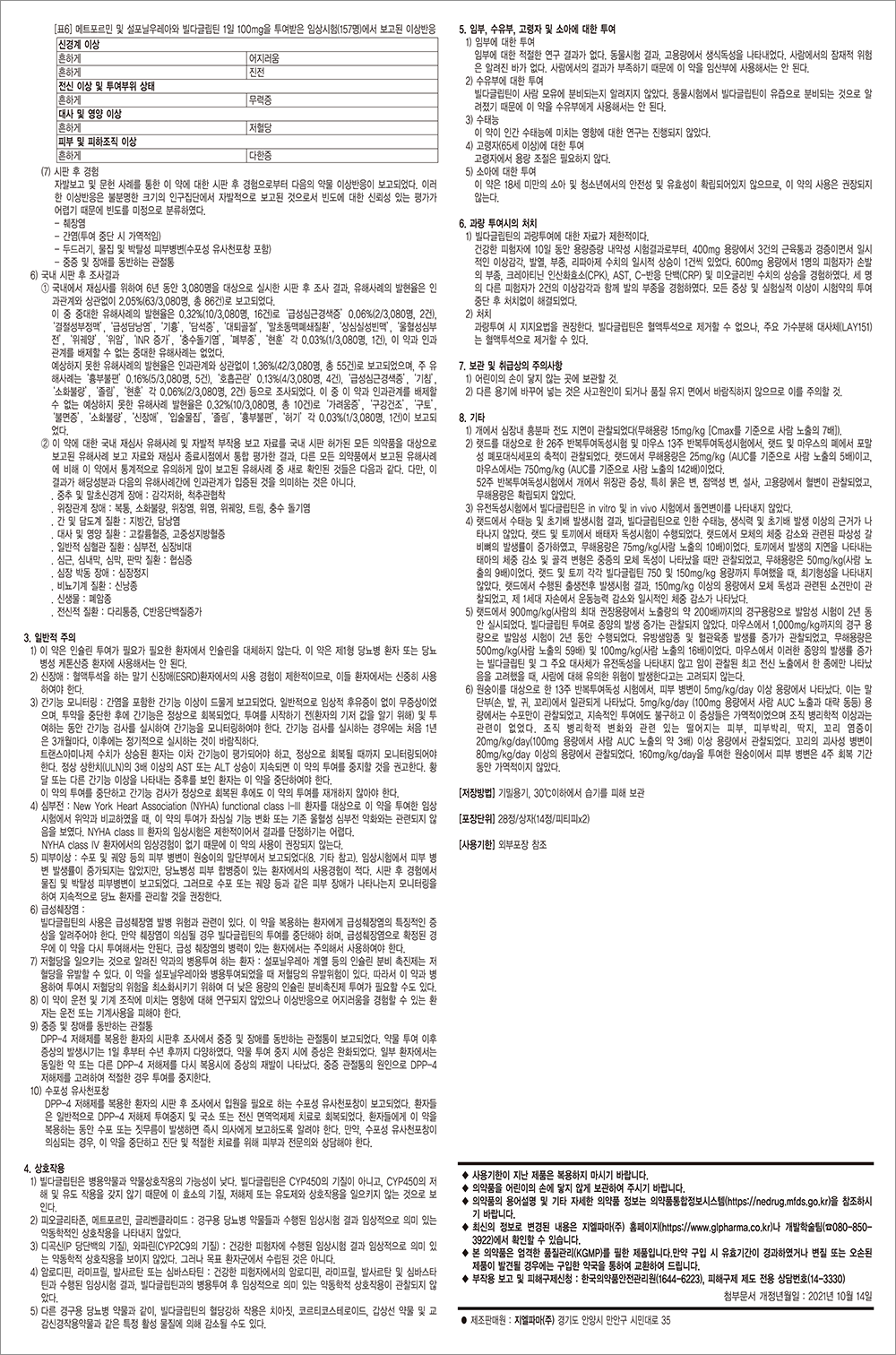 06. 이 약은 식사와 관계없이 복용할 수 있으며 1일 100mg 이상의 용량은 권장되지 않는다.