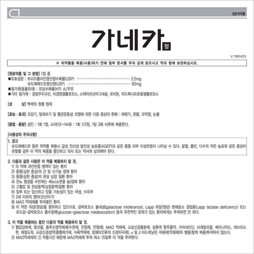 슈도에페드린염산염 60mg, 트리프롤리딘염산염수화물 2.5mg