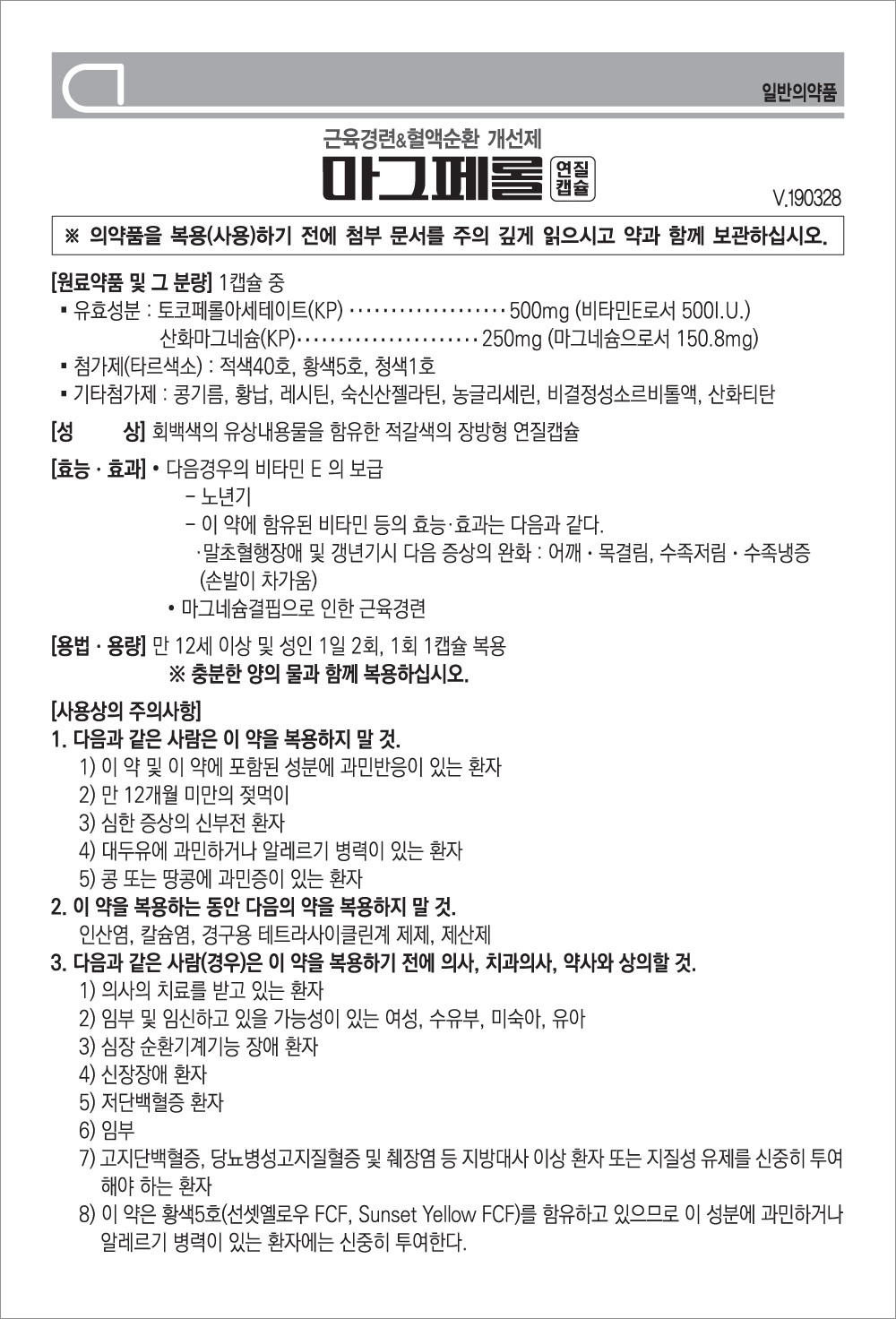 산화마그네슘 250mg, 토코페롤아세테이트 500mg