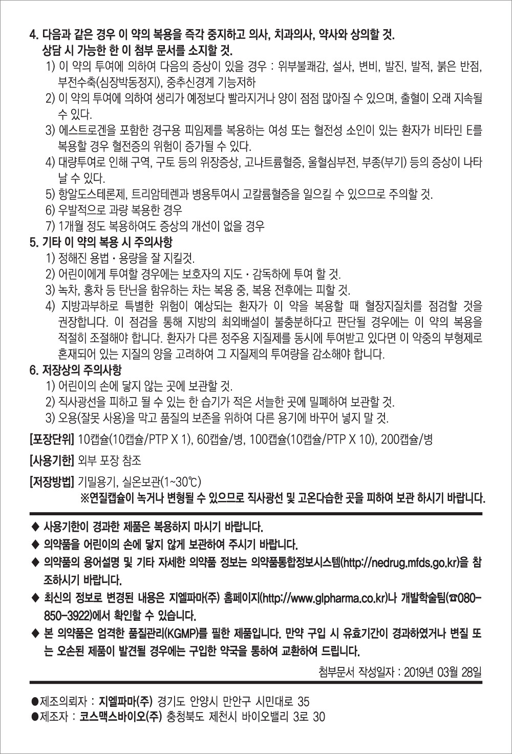 03) 녹차, 홍차 등 탄닌을 함유하는 차는 복용중, 복용전후에는 피할 것.